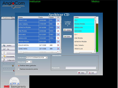 - Graba CD en DICOM, pudiéndose seleccionar todos los estudios del día automáticamente, va completando los CD, los numera y guarda la información en una base de datos.